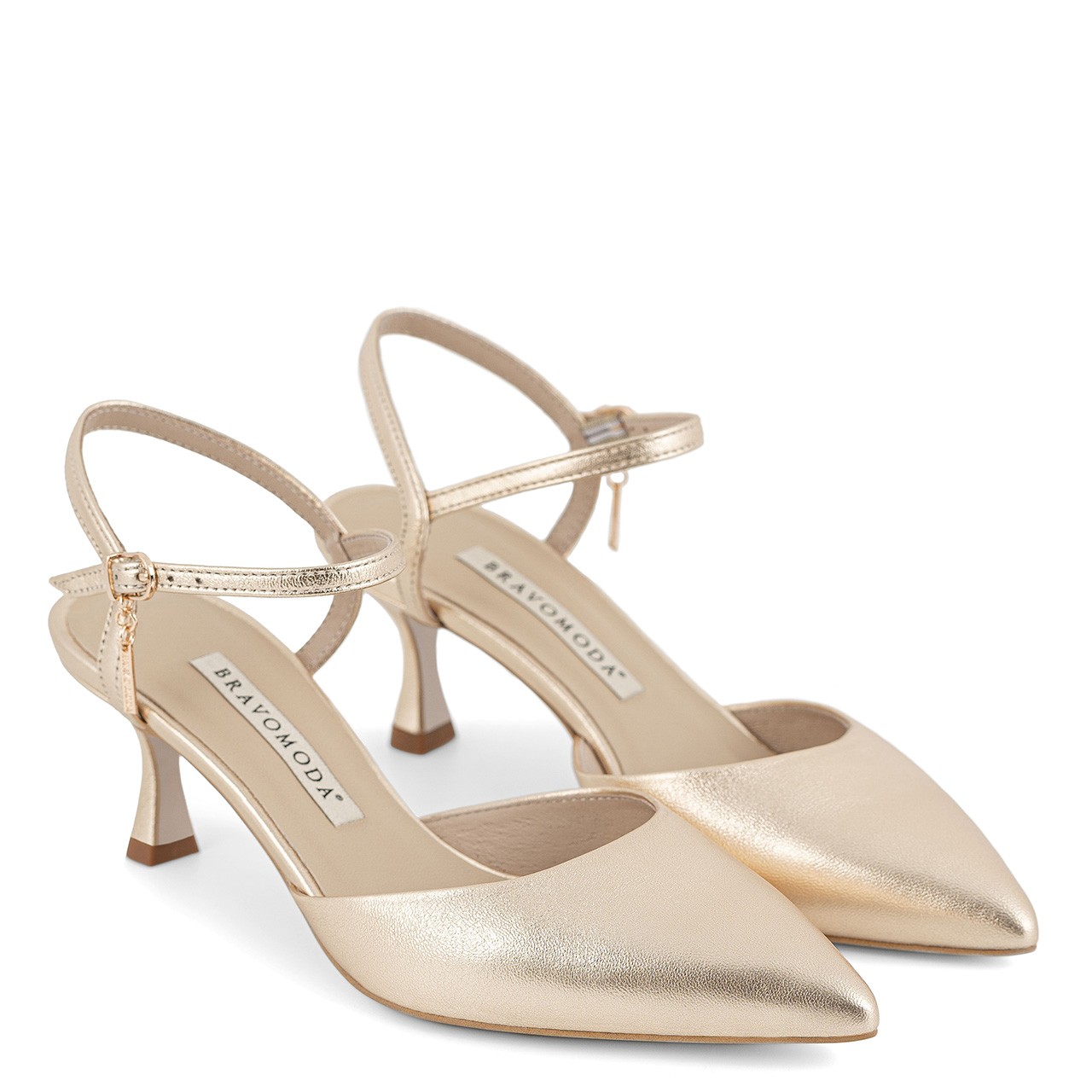 Obcas o wysokości 6 cm zapewnia subtelne uniesienie sylwetki i elegancką postawę, jednocześnie pozostając wyjątkowo komfortowym. Niska, stabilna szpilka została zaprojektowana tak, aby umożliwiać swobodne poruszanie się przez cały dzień. Dzięki odpowiedniemu wyważeniu, złote czółenka z odkrytą piętą gwarantują stabilność i wygodę, nawet podczas dłuższego noszenia.
